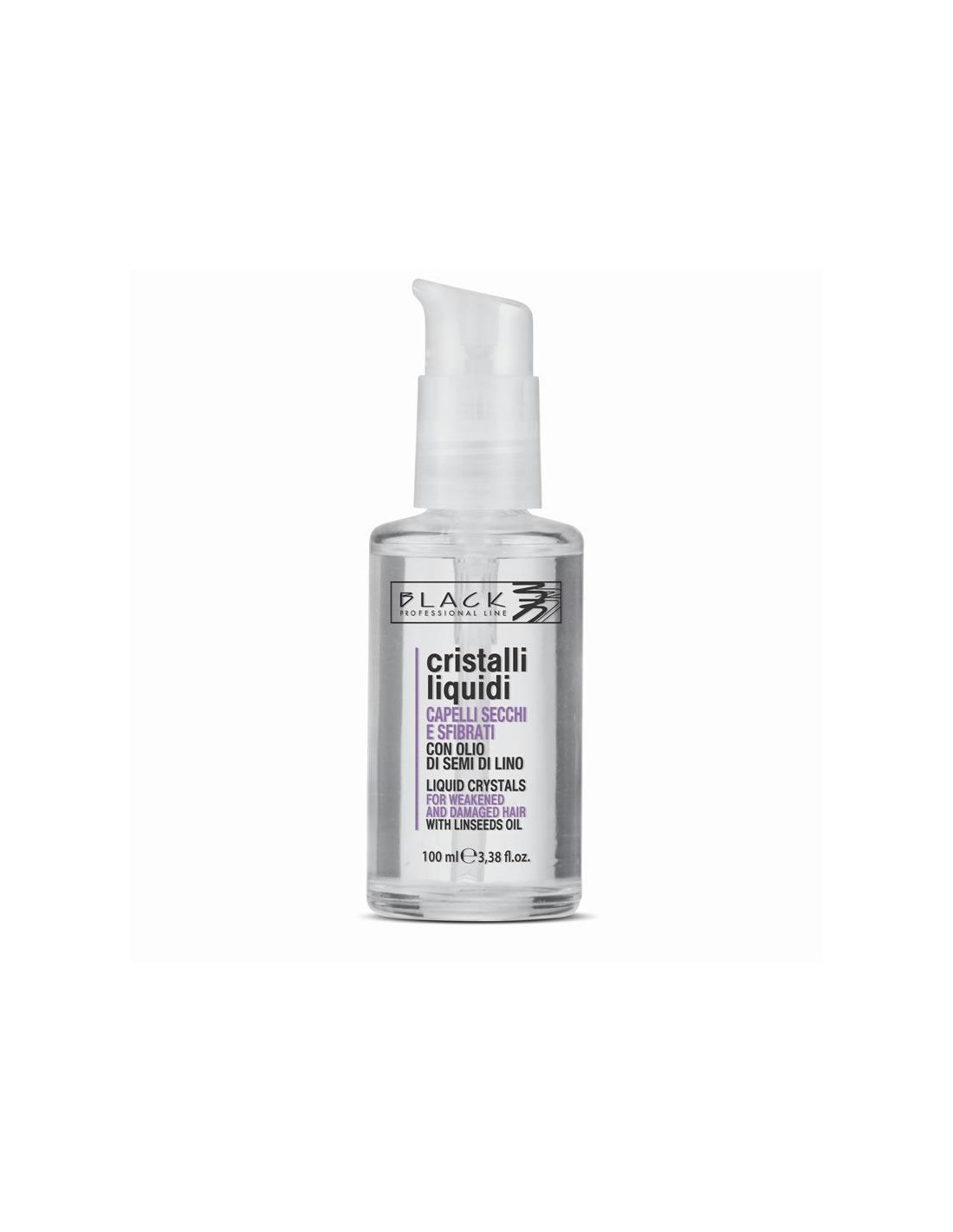 CRISTAL LÍQUIDO BLACK es un serum con semilla de lino que contiene un alto porcentaje de acete con acción emoliente contra los agentes atmosféricos y los repetidos tratamientos, como tintes, permanentes, decoloraciones, ect.